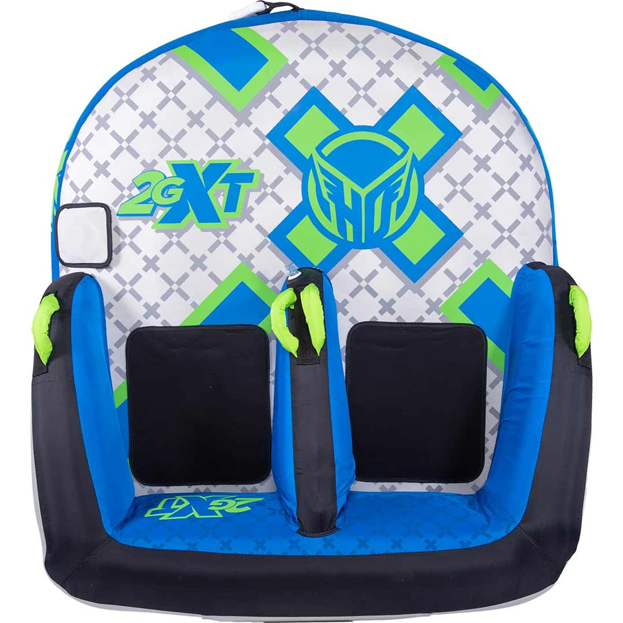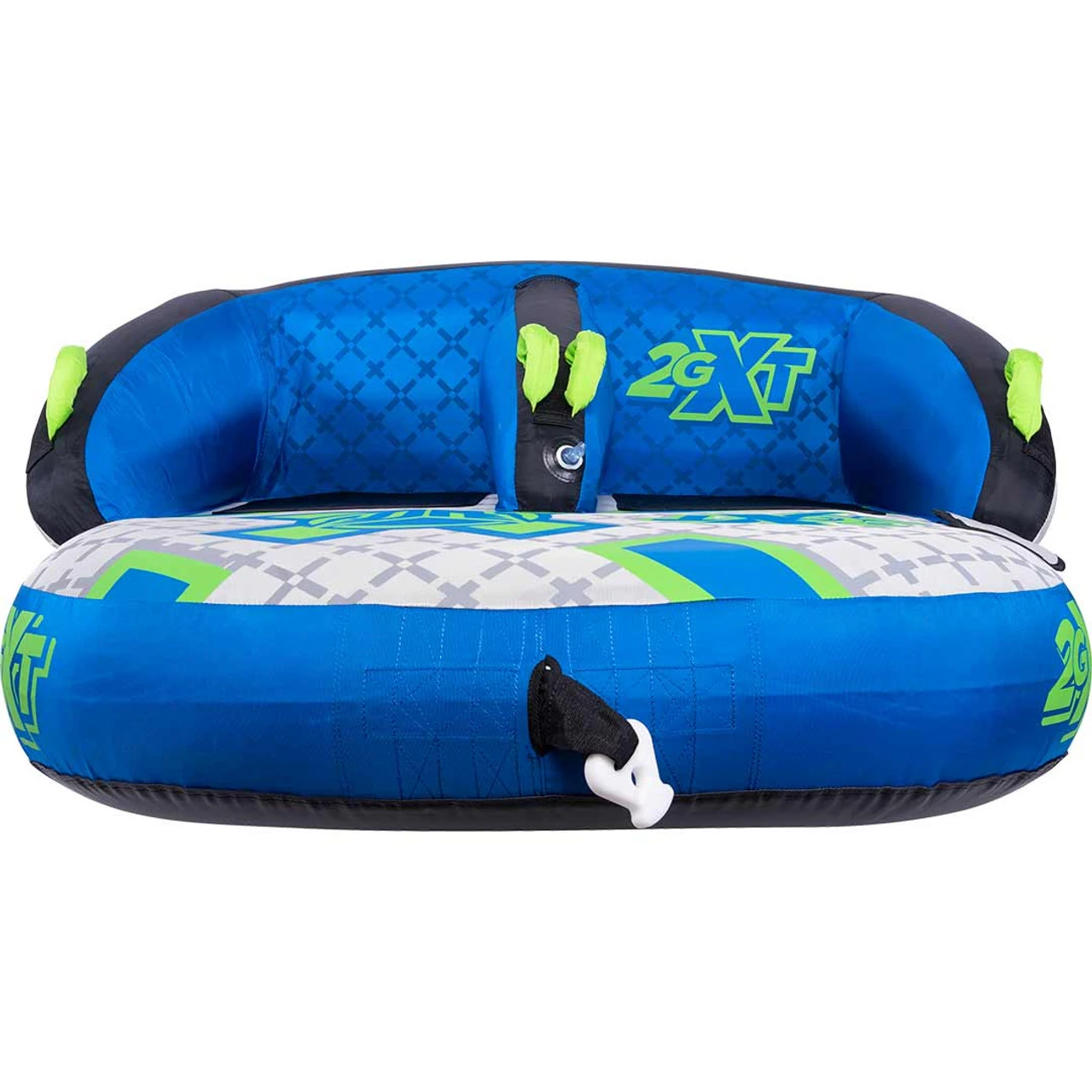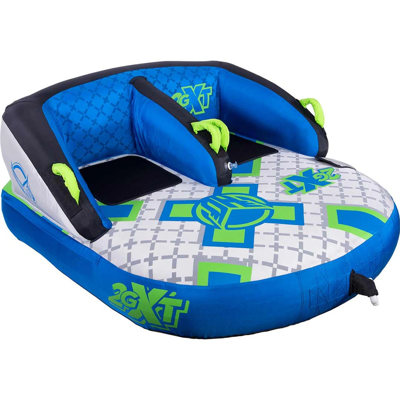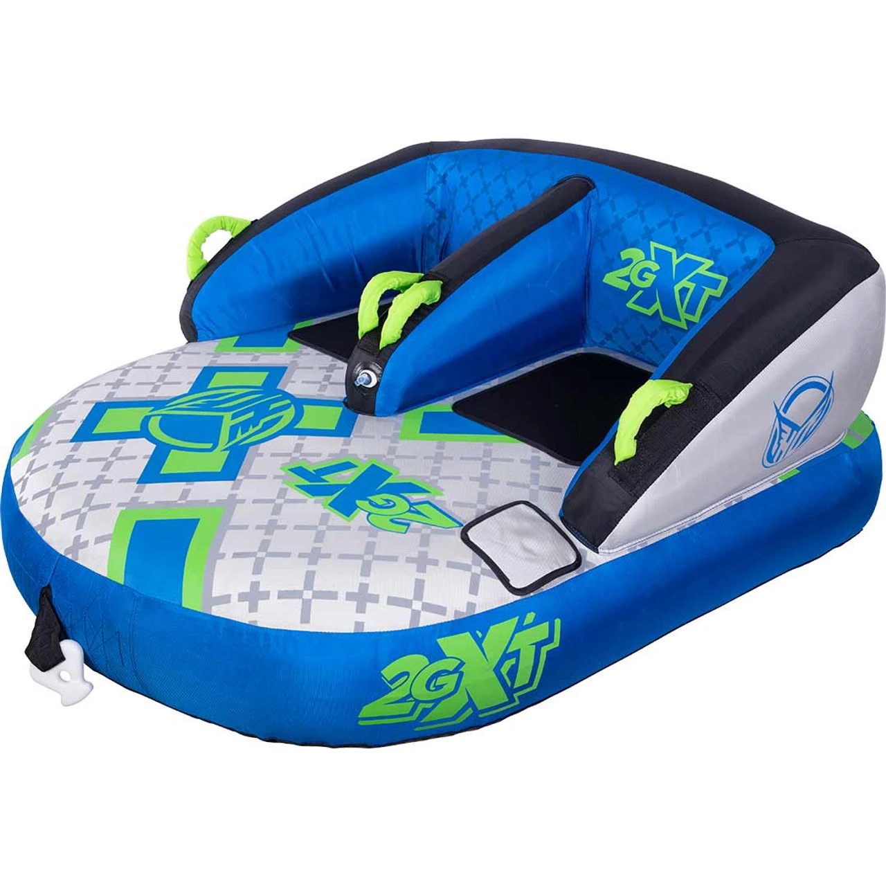 The name says it all β2GXT. XT stands for eXtra Tough. We spared no expense with this towable tube and we stand behind it with our INDUSTRY FIRST 3 YEAR LIMITED WARRANTY. Our customers asked for an “EXTRA TOUGH” version of our best seller 2G and we answered by building the XT with the thickest and toughest materials money can buy. Grab a friends and sit down in the ergonomic, lounge style seats! Made from only the finest materials and backed by our 3 year limited warranty, the 2GXT will keep you where you want to be…on the water!One, two or three rider towable!